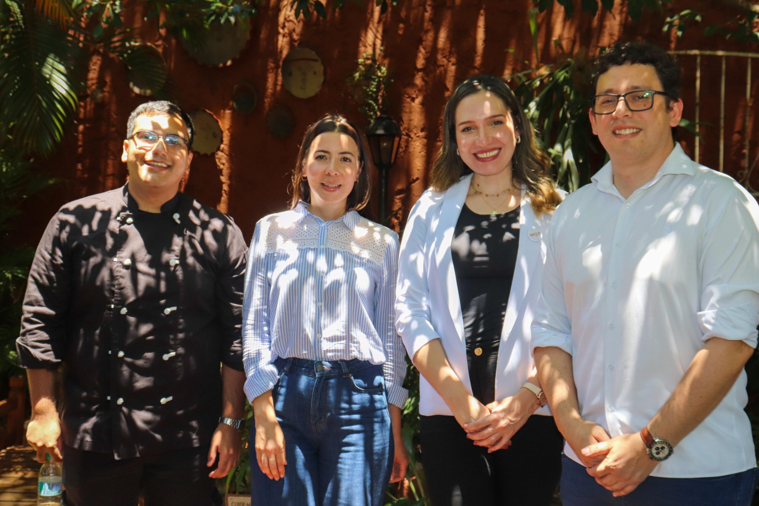 Alejandro Lezcano y Juan Arias, chef operativo y gerente de Operaciones respectivamente de El Café de Acá junto a Pamela Almada de la Senatur y Sandy Ayala de Sinapsis Agencia, en el lanzamiento de su exquisito Vitel toné de la temporada.