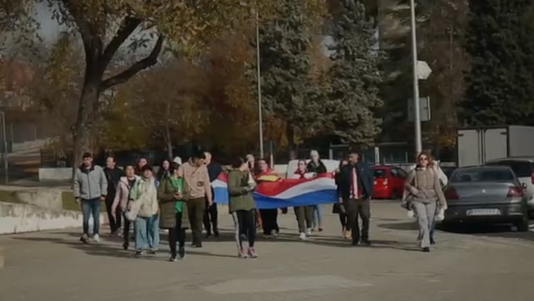 Con banderas paraguayas y cánticos llegaron al Tupasy Ycua de Madrid.